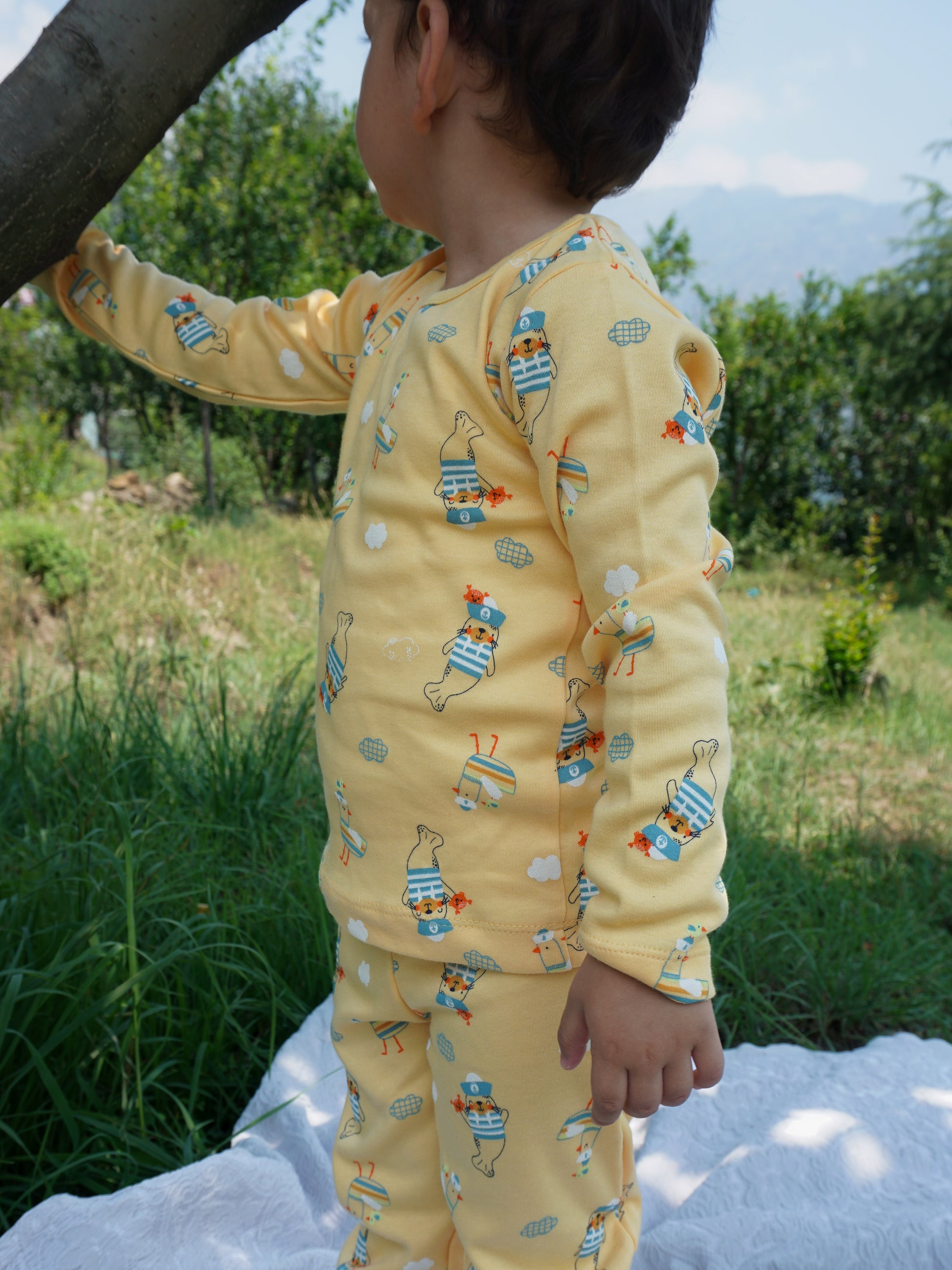 Our premium night suits are designed to solve this exact problem. The breathable yet snug fabric acts like a second skin, keeping them cozy all night without overheating. Unlike bulky layers or fussy blankets, these sets stay put through every twist, kick, and dreamy adventure. With soft long sleeves and gentle stretch, they lock in warmth and comfort, so you both sleep soundly. Finally, peace of mind that they’re safe, snug, and ready to wake up smiling. 🌙✨