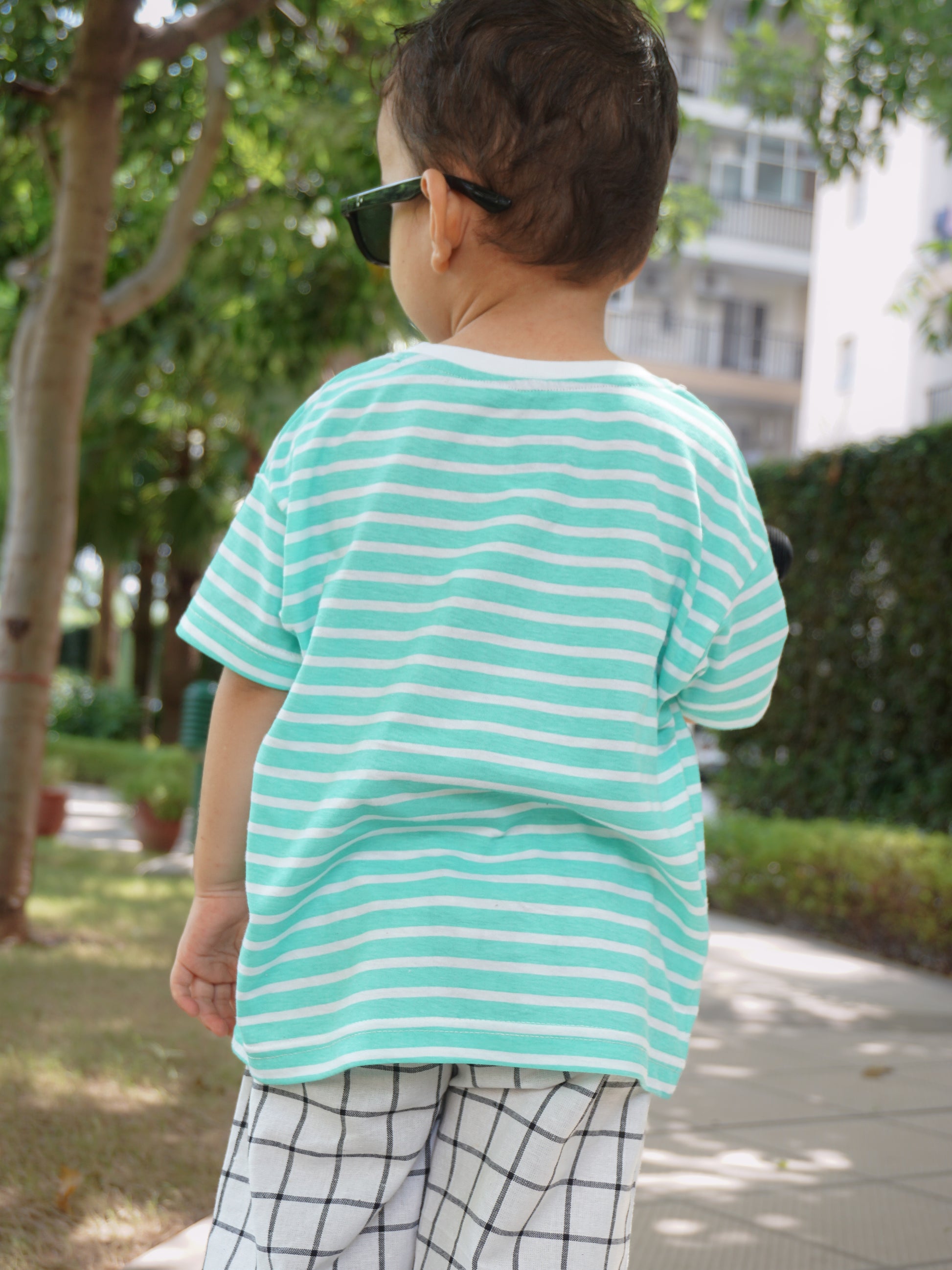 Relaxed Fit Mint Green Striped Cotton T-Shirt